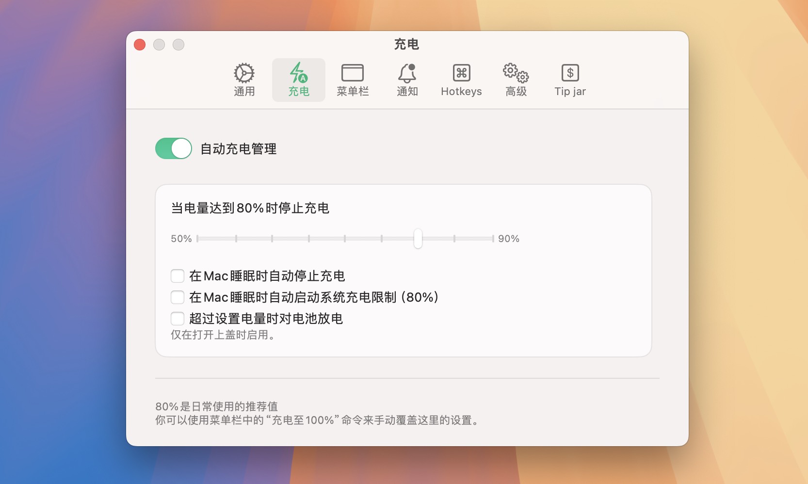 智能充电:学习使用习惯,动态调整充电上限(如充至80%即停)。